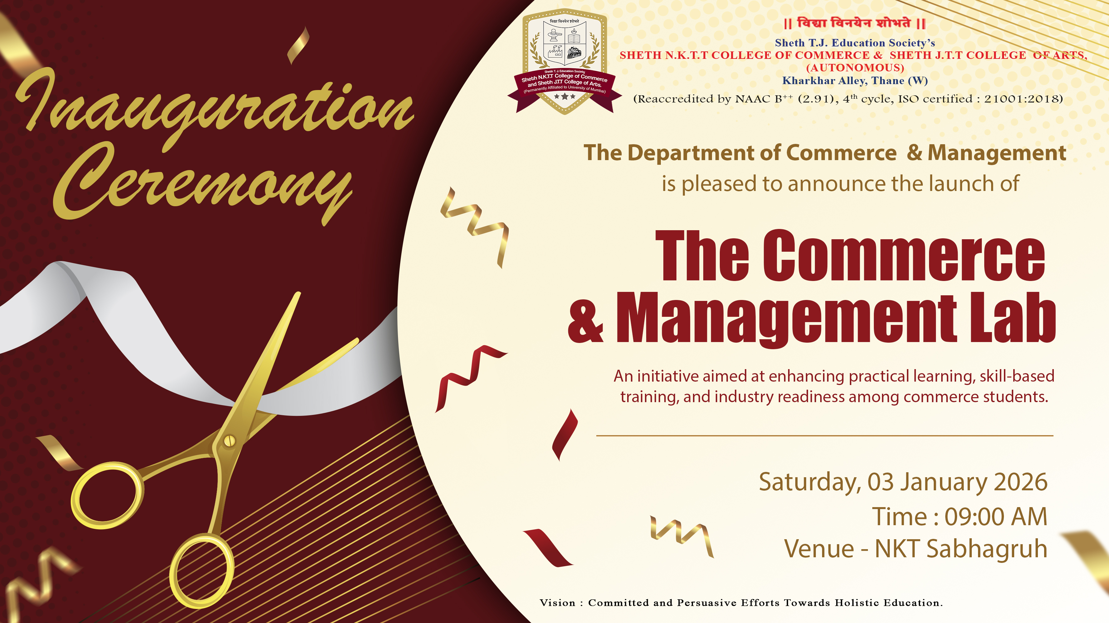 View DetailsThe Art Circle of Sheth N.K.T.T. College of Commerce and Sheth J.T.T. College of Arts cordially invites students and guests to celebrate its Annual Day “AURORA,” featuring cultural performances and artistic showcases.